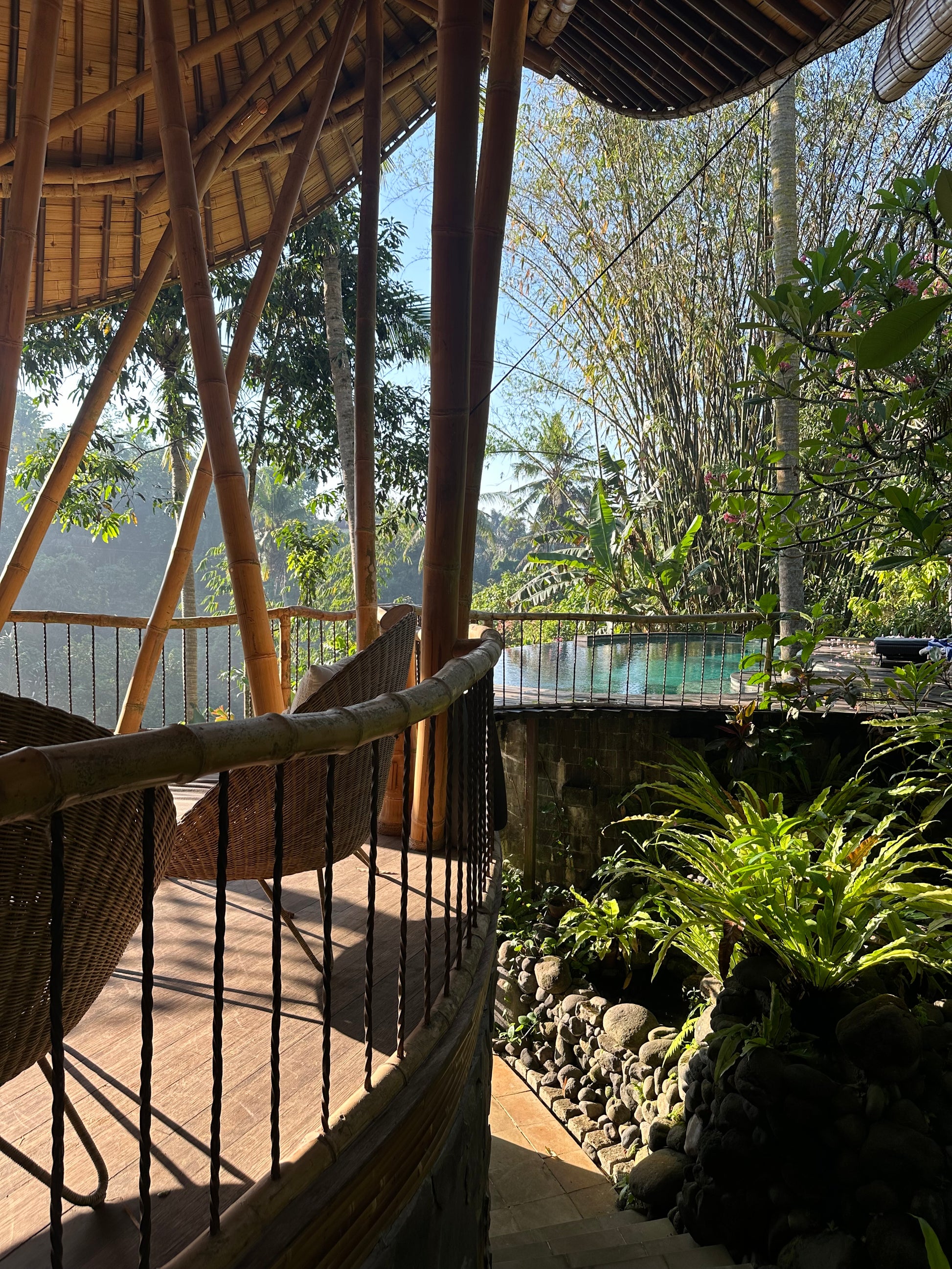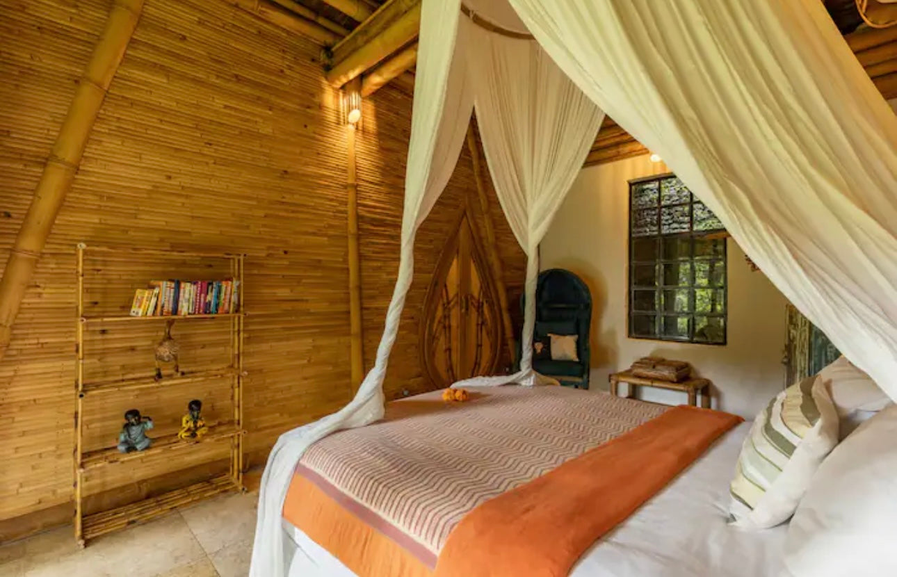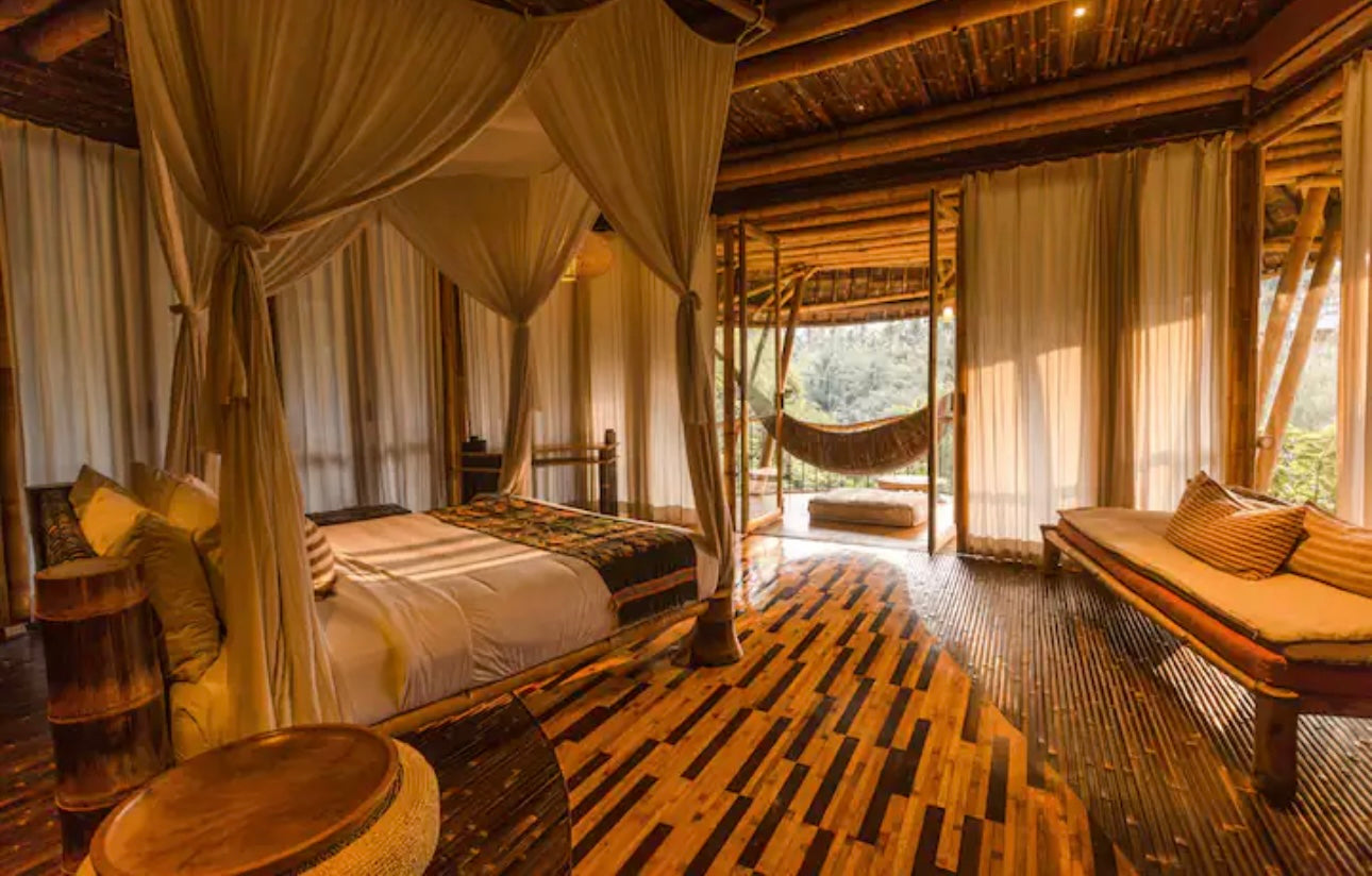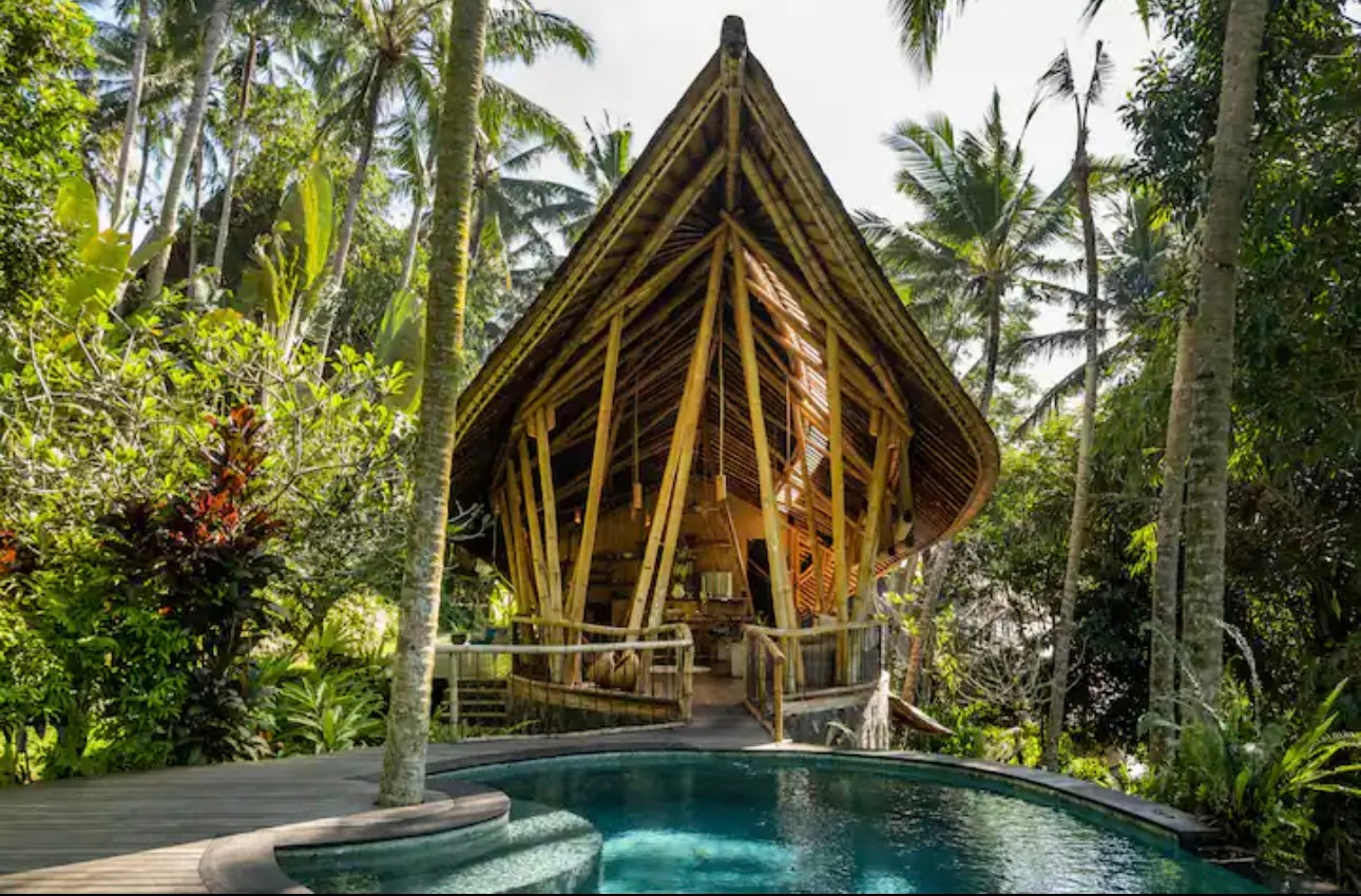 You’ll stay at the stunning Green Village Bali, nestled in the lush jungle along the Ayung River. This eco-friendly community features luxurious bamboo villas, designed to harmonize with the surrounding environment. Each villa offers modern comforts while celebrating sustainable living. Wake up to the sounds of nature and unwind in a serene, eco-conscious setting.