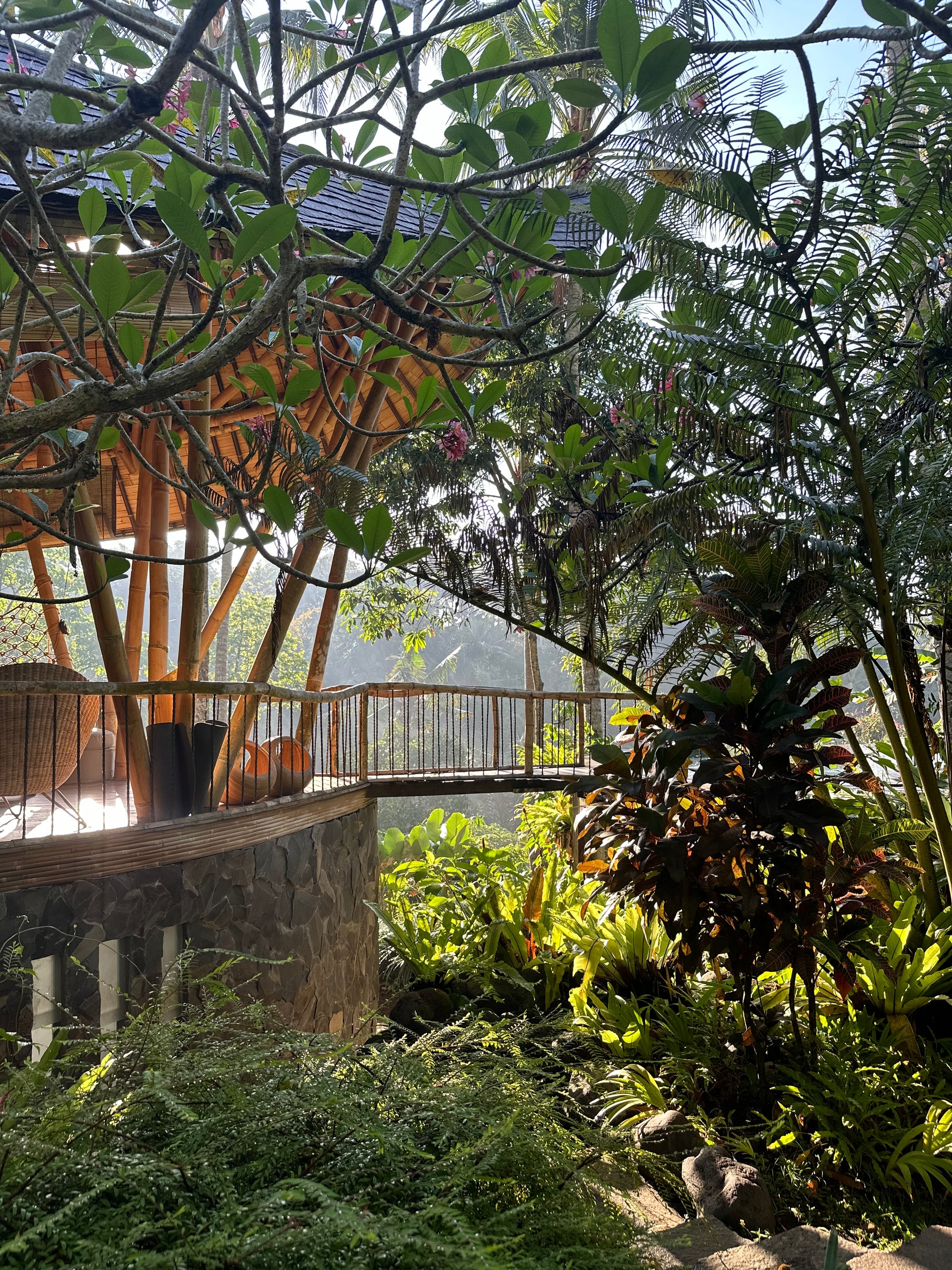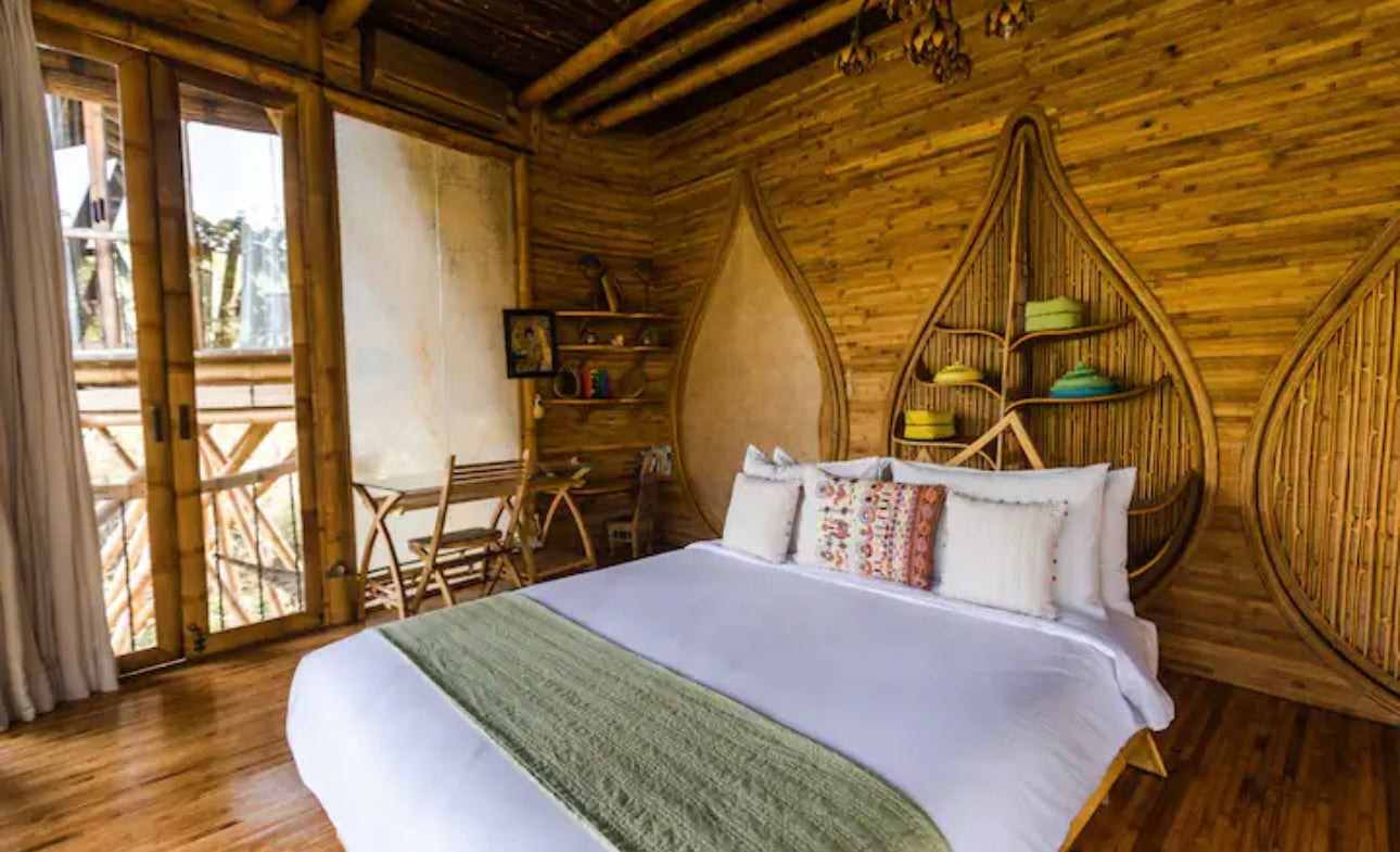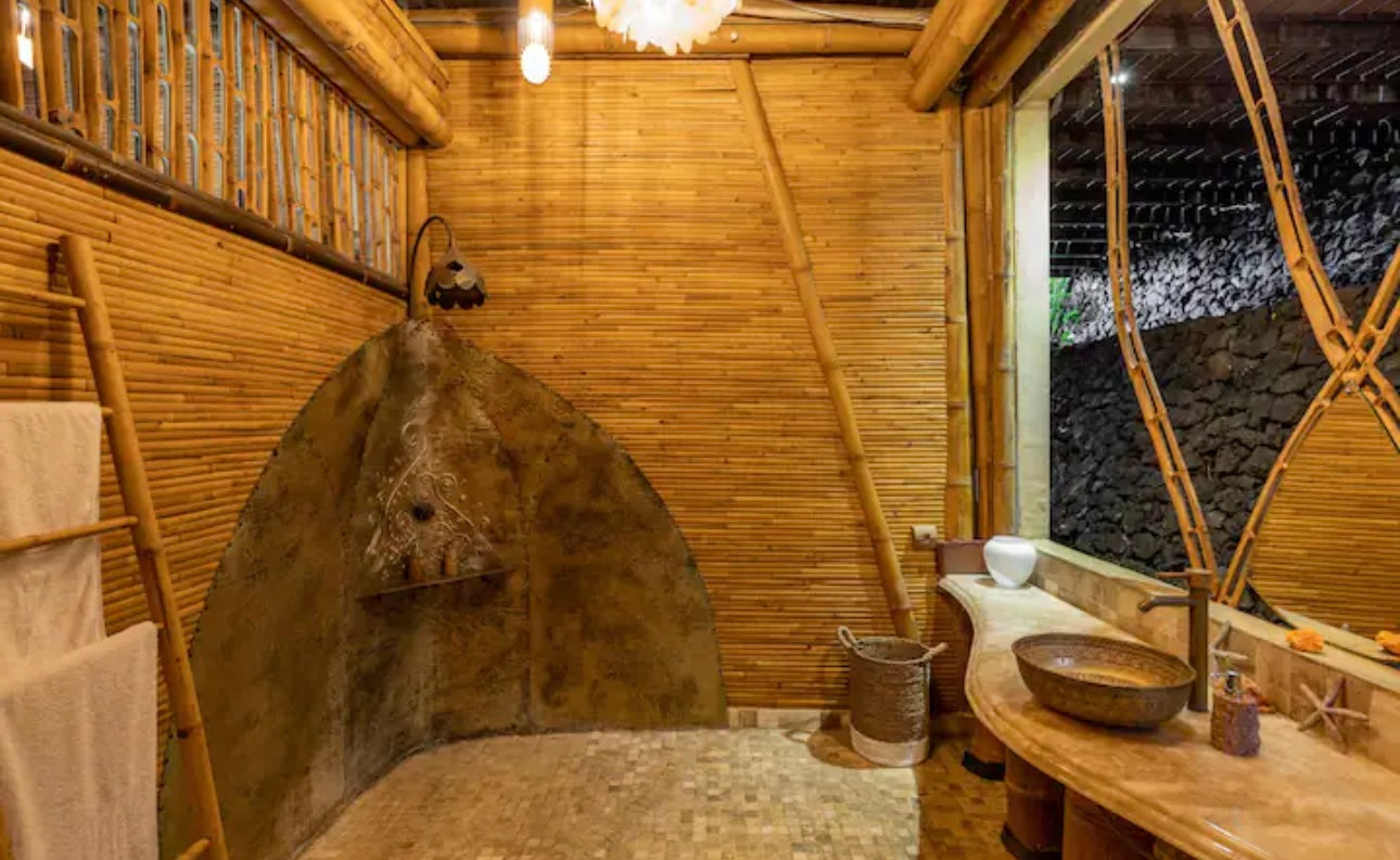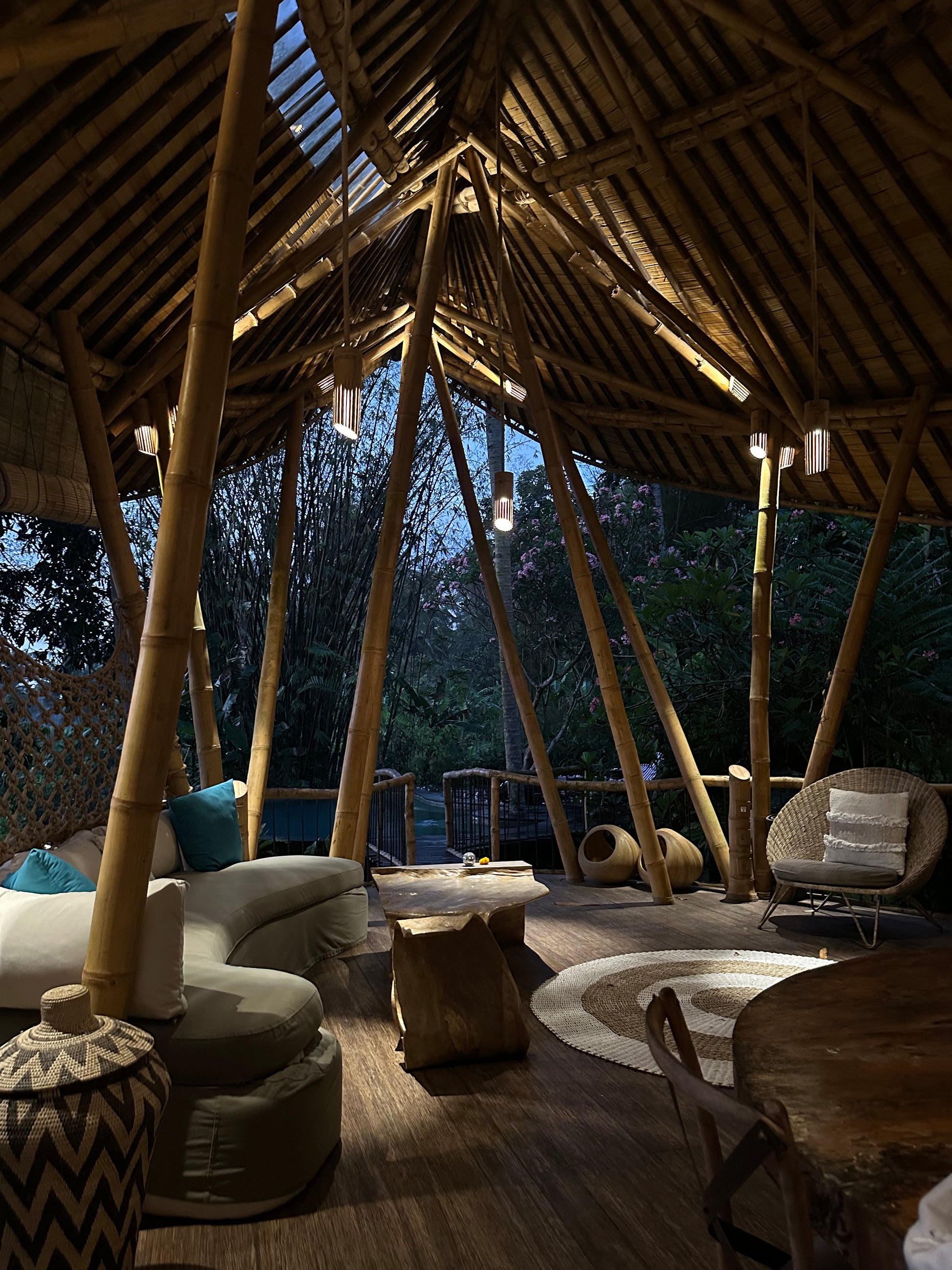 You’ll stay at the stunning Green Village Bali, nestled in the lush jungle along the Ayung River. This eco-friendly community features luxurious bamboo villas, designed to harmonize with the surrounding environment. Each villa offers modern comforts while celebrating sustainable living. Wake up to the sounds of nature and unwind in a serene, eco-conscious setting.